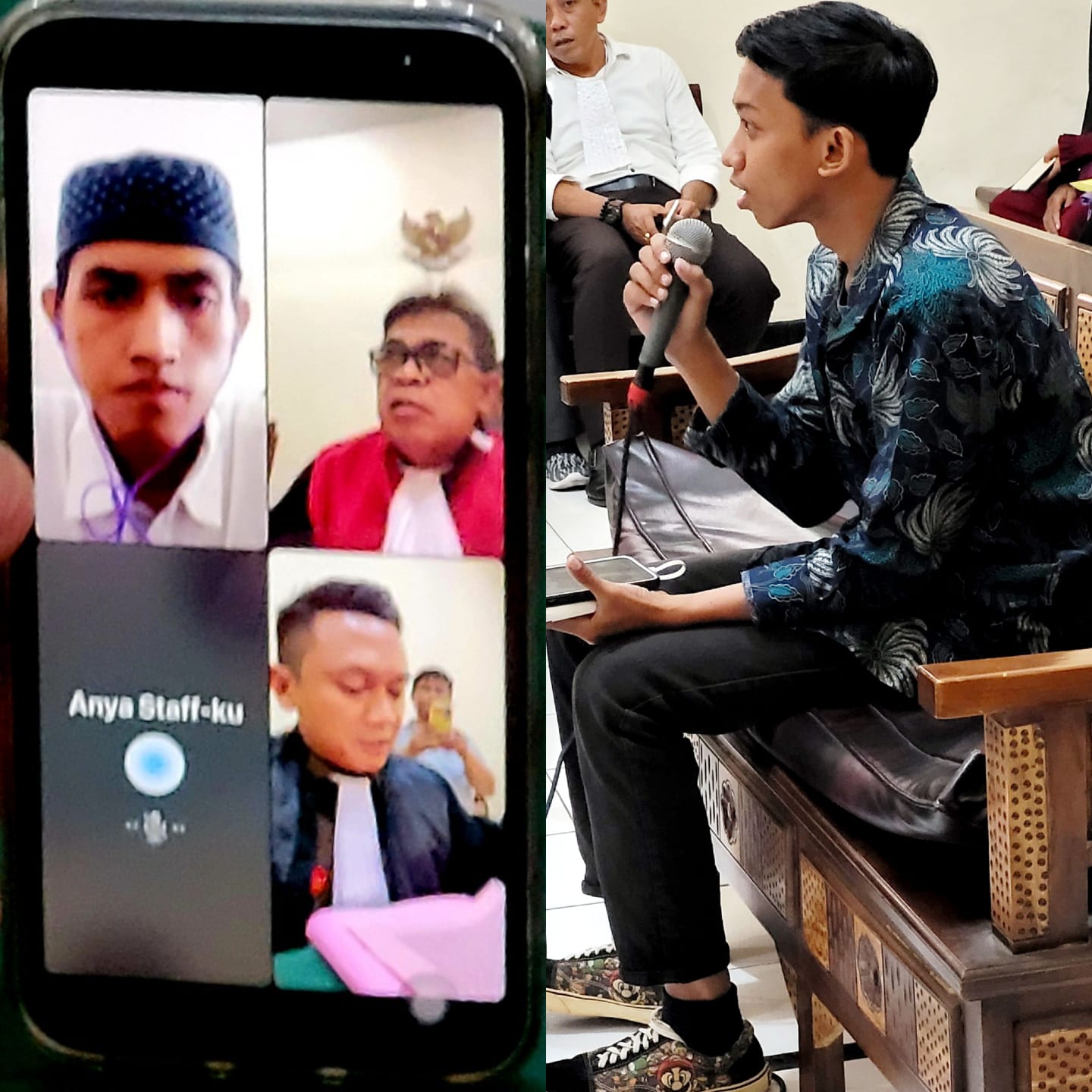 Terdakwa Eko Suhardianto bin Ruselan (kiri), dan saksi pemilik motor, M.Nur Cholis ( kanan),sidang dengan agenda putusan hakim, secara Vidio Call.
