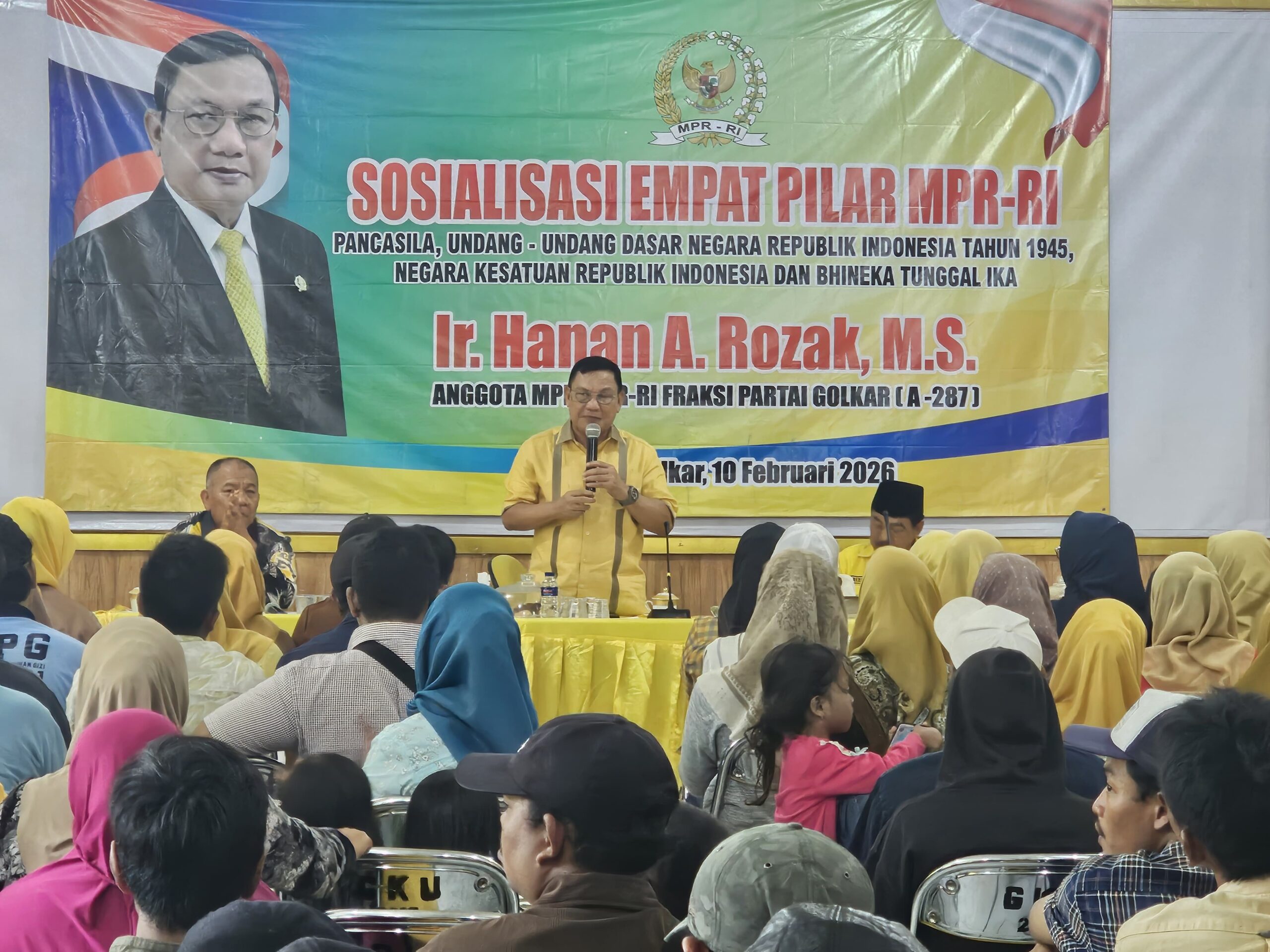 Hanan menyampaikan bahwa nilai-nilai 4 Pilar MPR RI sejalan dengan ideologi karya dan kekaryaan Partai Golkar, diantaranya terkait stabilitas nasional, pembangunan, dan persatuan.