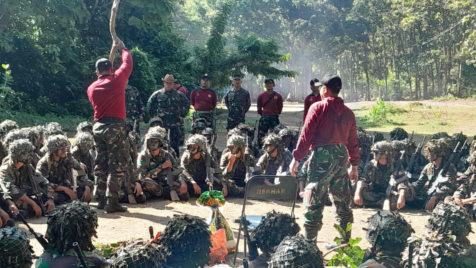 Surabaya- TabirNusantara.com Guna meningkatkan moril siswa terus menyala dengan memberikan semangat, Kapokgadik Kodiklatal, Brigjen TNI Marinir Sarjito meninjau Latihan Praktek (Lattek) Siswa Pendidikan Komando (Dikko) Angkatan 173 Marinir Tahap Hutan yang diikuti 57 Siswa Taruna AAL Angkatan 71, 101 Siswa Dikmaba 43/1 dan 342 Siswa Dikmata 43/1, bertempat di Hutan Selogiri Kec. Kalipuro Banyuwangi. Senin (19/02/2024).