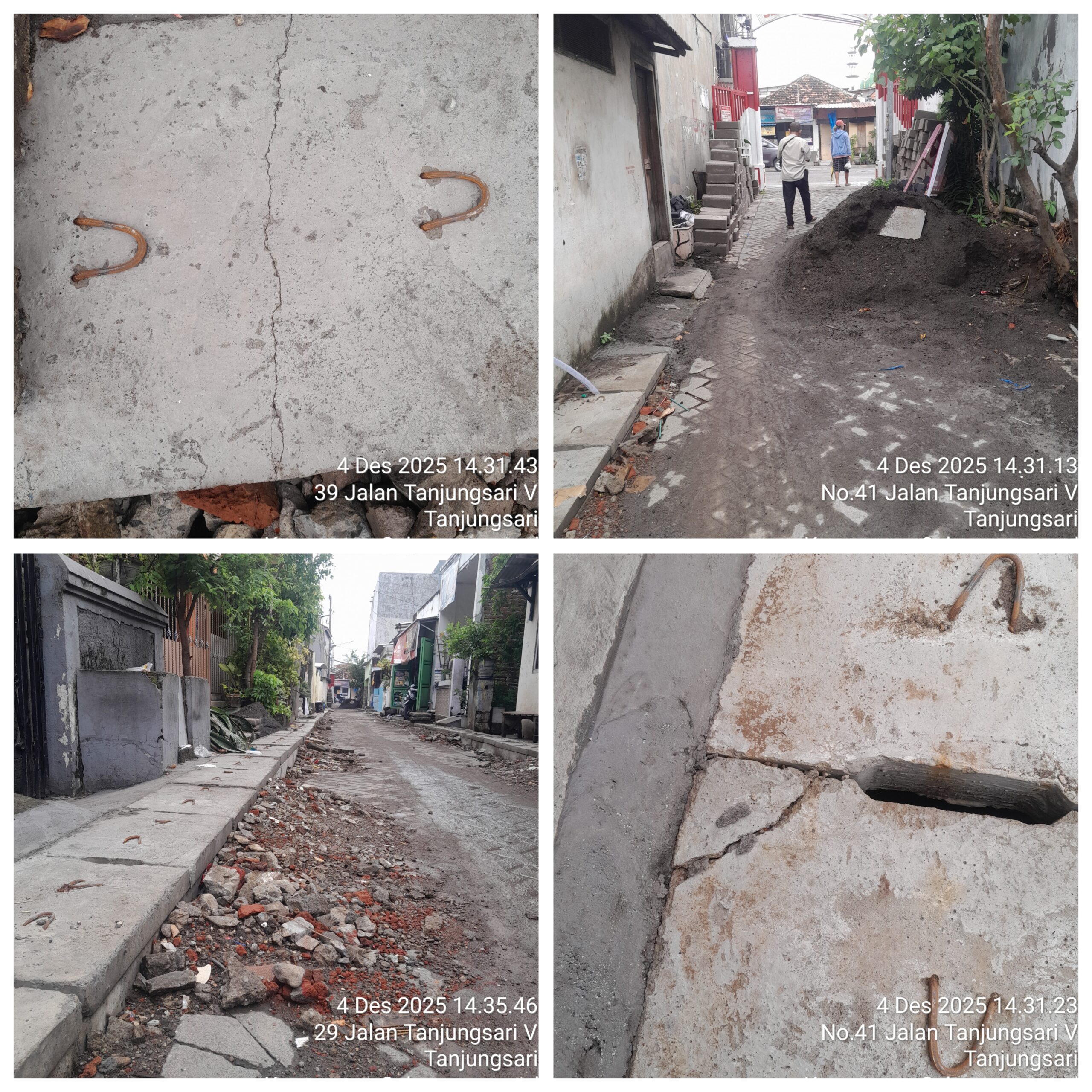 SURABAYA – Proyek pembangunan jalan paving dan saluran air (u-ditch) senilai Rp 188.672.556 di Jalan Tanjungsari V RT.013 RW.002 Kelurahan Tanjungsari Kecamatan Sukomanunggal kota Surabaya menghadapi kendala teknis serius berupa material beton retak dan pemasangan yang tidak presisi berdasarkan pantauan Kamis (4/12/2025) pukul 14.35 WIB. Pekerjaan yang dibiayai APBD Kota Surabaya Tahun Anggaran 2025 dan dikerjakan CV. Mitra Konstruksindo ini Terpantau belum rapi sembilan hari menjelang target penyelesaian.