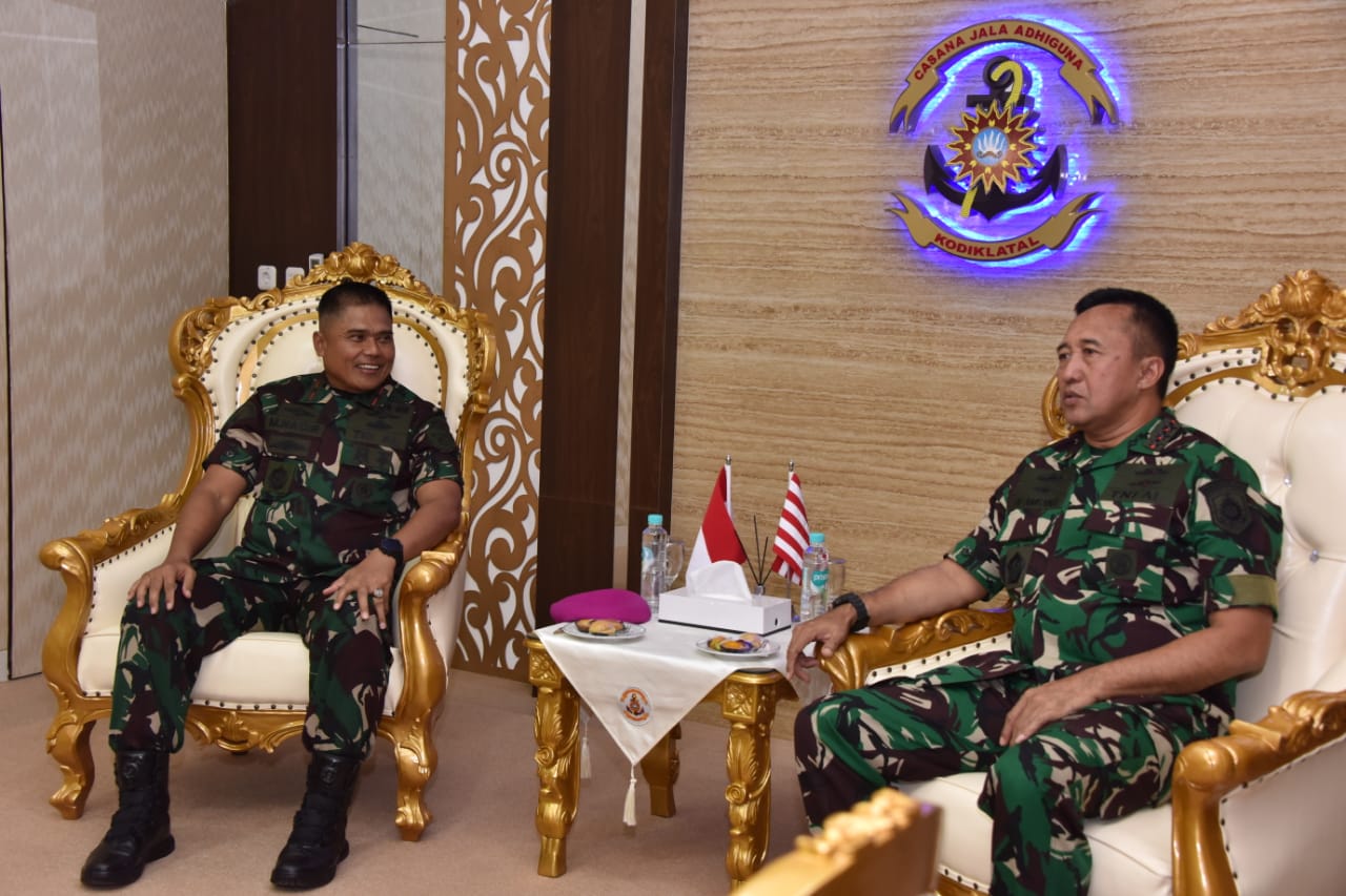 Surabaya- TabirNusqntara.com Komandan Kodiklatal (Dankodiklatal) Letjen TNI Marinir Nur Alamsyah menerima Courtessy Call Panglima Koarmada (Pangkoarmada) II Laksdya TNI Denih Hendrata dalam rangka silaturahmi. Pertemuan dua Petinggi TNI AL Alumni Akademi Angkatan Laut (AAL) Angkatan 35 Tahun 1989 itu berlangsung di Ruang Kerja Dankodiklatal, Mako Kodiklatal, Bumimoro Surabaya. Senin, (26/02/2024).