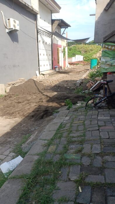 “Di kampung kami khususnya Gang 7 sebagian belum terpaving dan belum ada saluran gorong-gorong, sehingga pada musim hujan pasti banjir,” ujar Ghofur saat memberikan keterangan terkait kondisi awal lokasi.