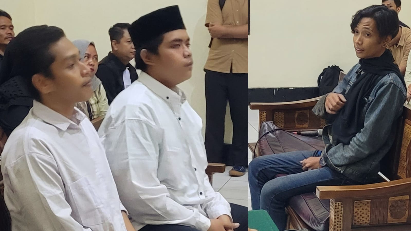Foto : Terdakwa Luqman Fahirul Rafi dan Terdakwa Louis Safarino Lake,(kiri),saksi korban Moch.Heru Kurniawan (kanan), agenda sidang saksi, diruang Garuda 1 PN. Surabaya, secara Offline, Kamis (30/01/2024).