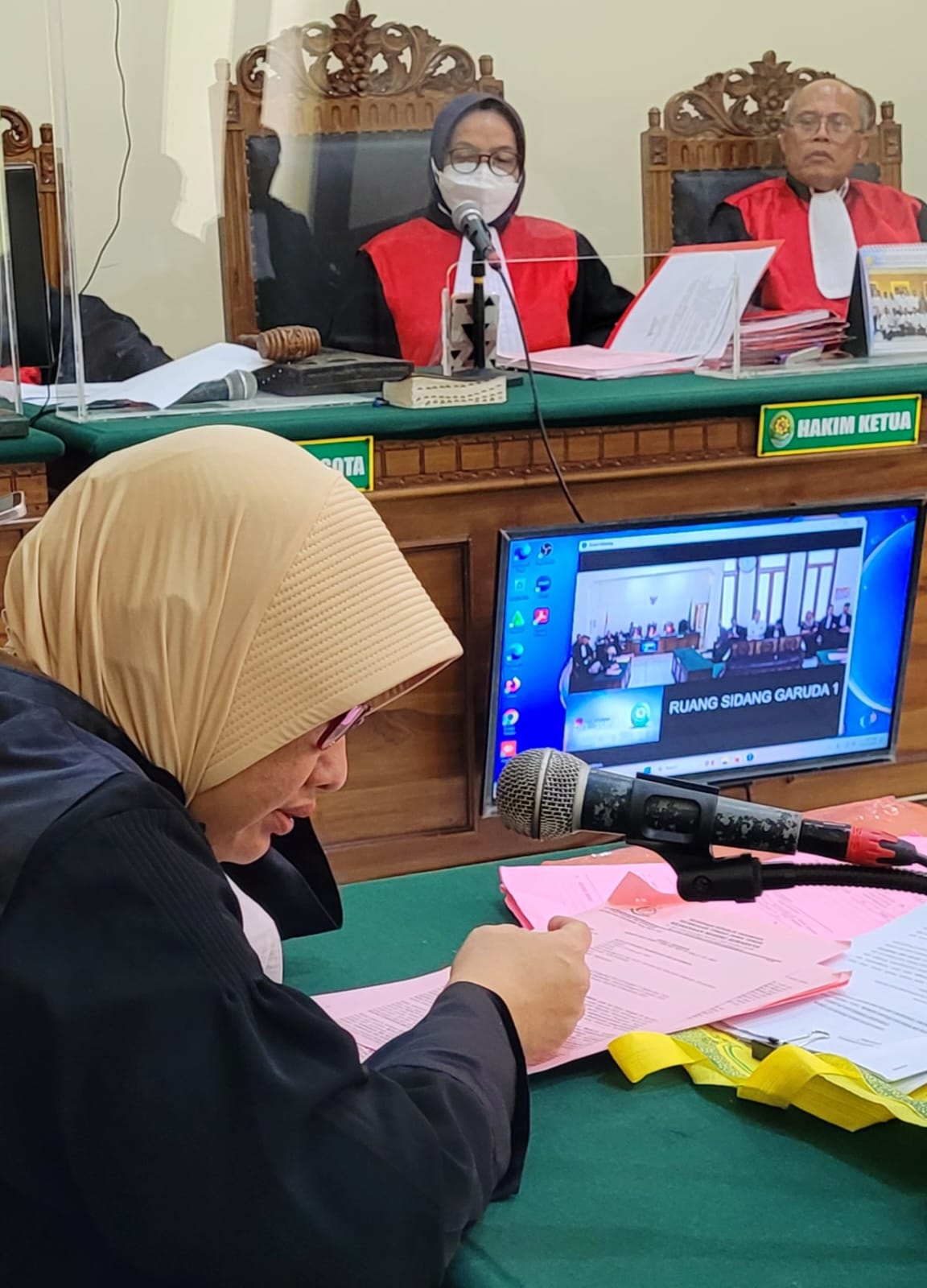 Jaksa Penuntut Umum (JPU) Oki Muji Astuti, dari Kejati Jatim, menyidangkan perkara pidana Judi bola online gunakan sarana Elektronik, dengan terdakwa Rizaldy Davinci Ramadhan, agenda Tuntutan JPU, diruang Garuda 1 PN.Surabaya, secara Vidio Call.