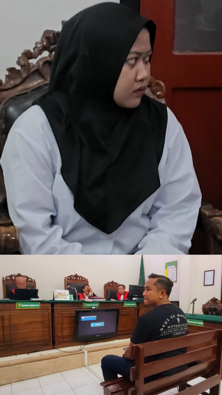 Foto : Terdakwa Putri Valentin Kusumaning Tyas (22) warga Nganjuk,(atas), saksi polisi Johan (bawah), dipimpin ketua majelis hakim Edi Saputra Palewi, diruang Garuda 2 PN.Surabaya, secara Offline, Selasa (03/06/2025).