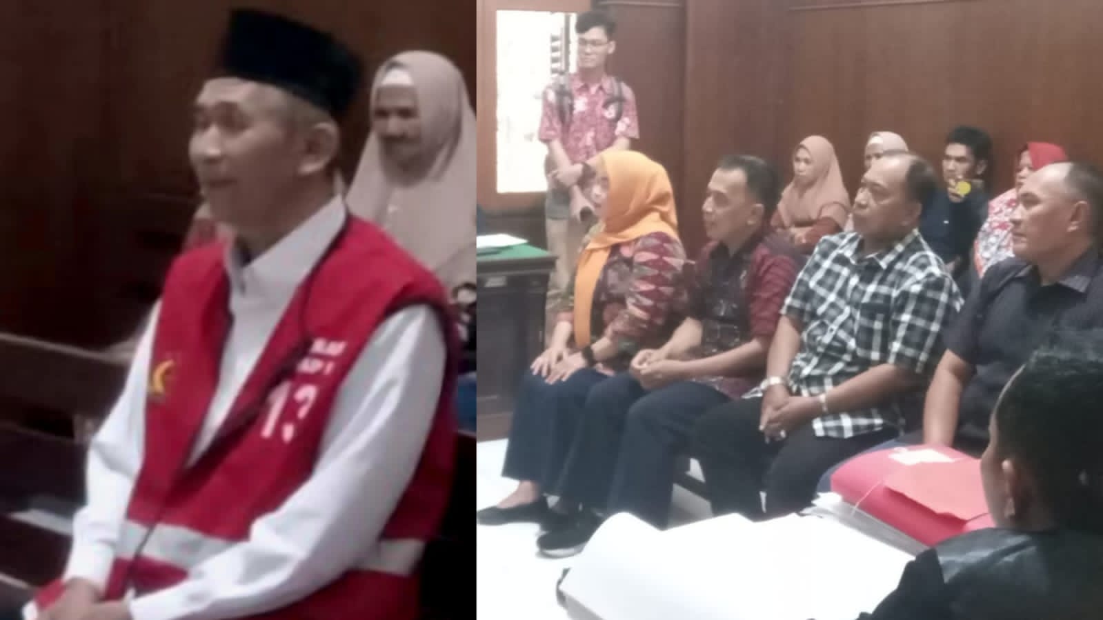 Terdakwa Imam Rojiki bin Damanhuri (55) (kiri), menjalani sidang agenda Tuntutan JPU, dan foto kanan para saksi yang dihadirkan JPU dipersidangan (kanan), diruang Tirta 2 PN.Surabaya, secara Offline.