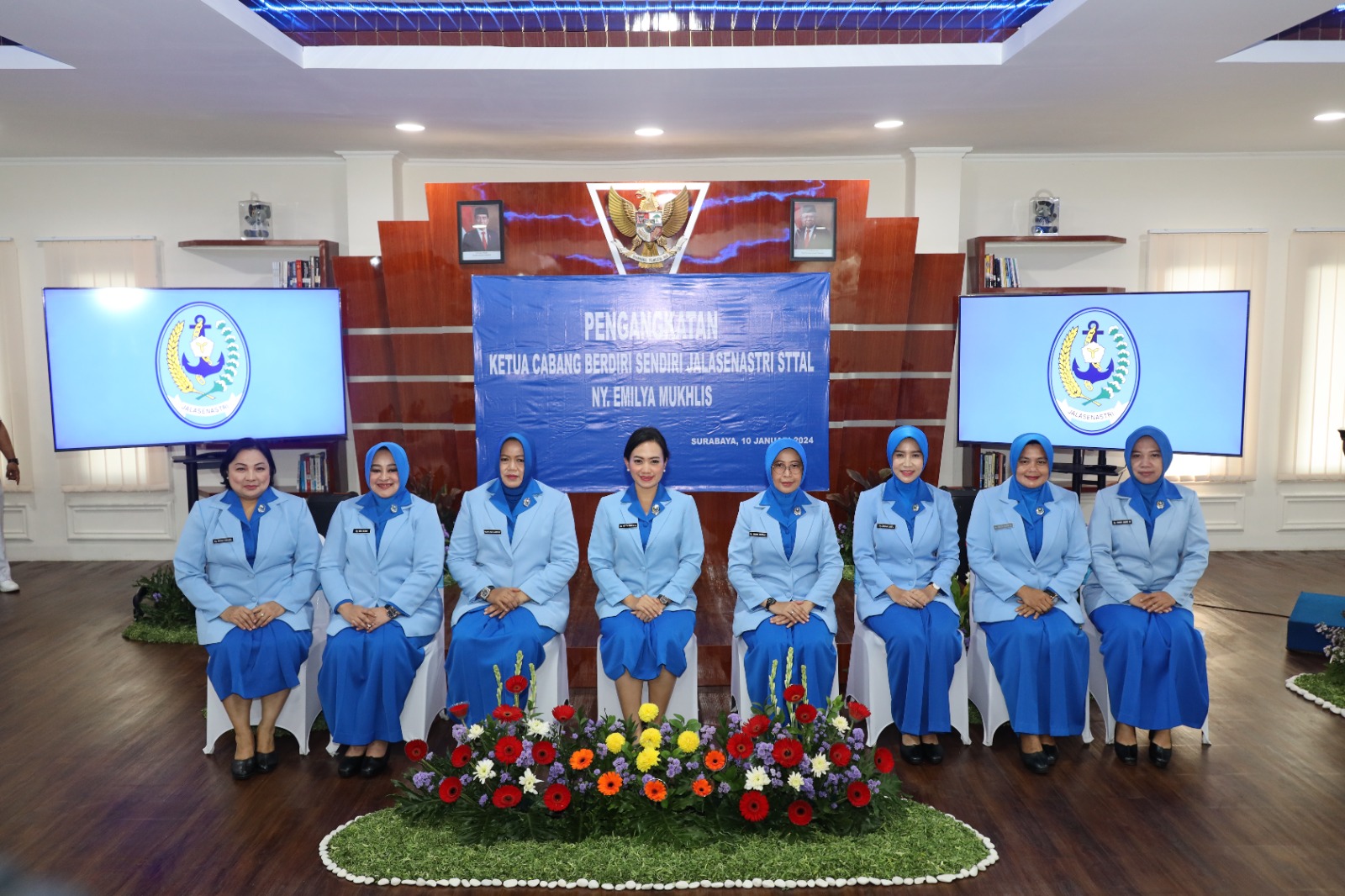 Surabaya- TabirNusantara.com Ketua Gabungan Jalasenastri Kodiklatal Ny. Ayu Nur Alamsyah selaku Ketua Bakor Jalasenastri Wilayah Surabaya menghadiri acara Pengangkatan Ketua Cabang Berdiri Sendiri (CBS) Jalasenastri STTAL Ny. Emilya Muklis yang dipimpin Wakil Ketua Umum Jalasenastri Ny. Ketty Erwin S. Aldedharma, bertempat di Gedung Suwarso STTAL Bumimoro Surabaya. Rabu (10/01/2024).