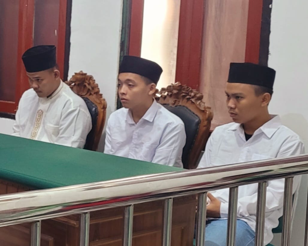 Foto : Terdakwa : Moh. Aminuddin Wakid, Lucky Hakim Amrulallah, Moch.Haris Putra Pratama, menjalani sidang agenda saksi korban, dan pemeriksaan Terdakwa, diruang Garuda 1 PN.Surabaya, Kamis (20/11/2025).