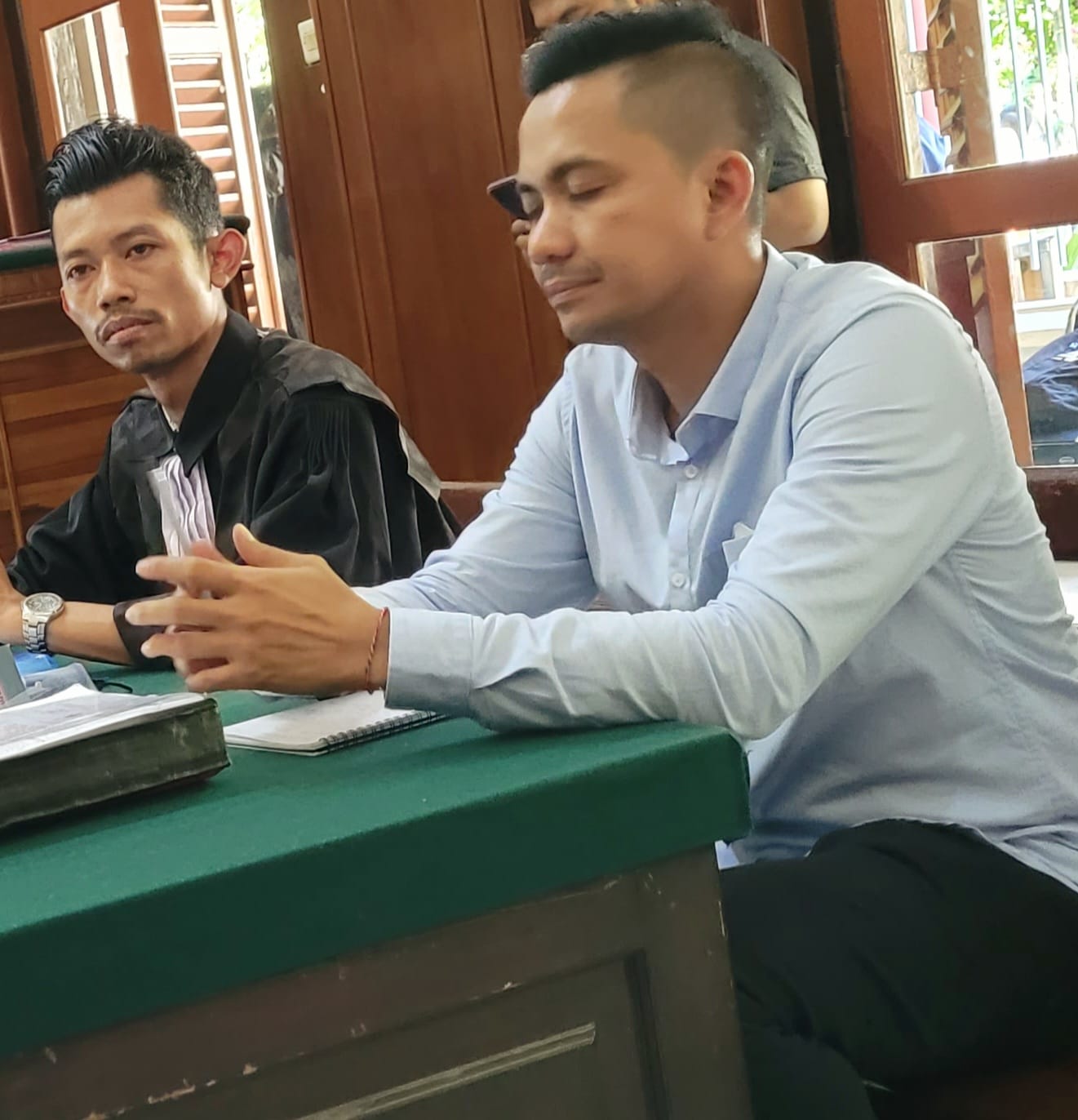 Terdakwa Rizky Fahriza, SH, (tidak ditahan), menjalani sidang, agenda tuntutan JPU, diruang Kartika 2 PN.Surabaya, Senin (08/01/2024).