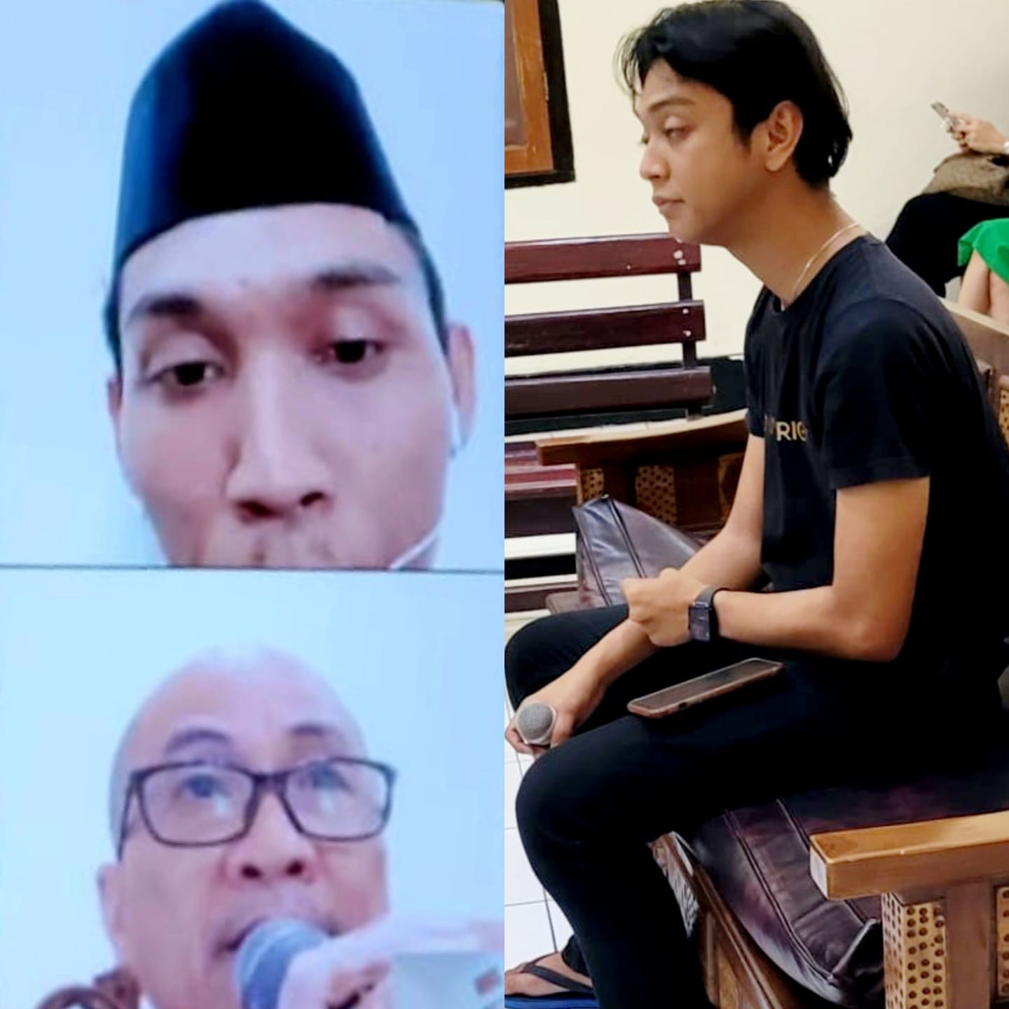 Terdakwa Guntur Pamungkas alias Tupai (kiri atas), dan saksi polisi Zikrullah (kanan), sidang agenda Tuntuyan JPU, diruang Garuda 1 PN.Surabaya, secara Vidio Call.