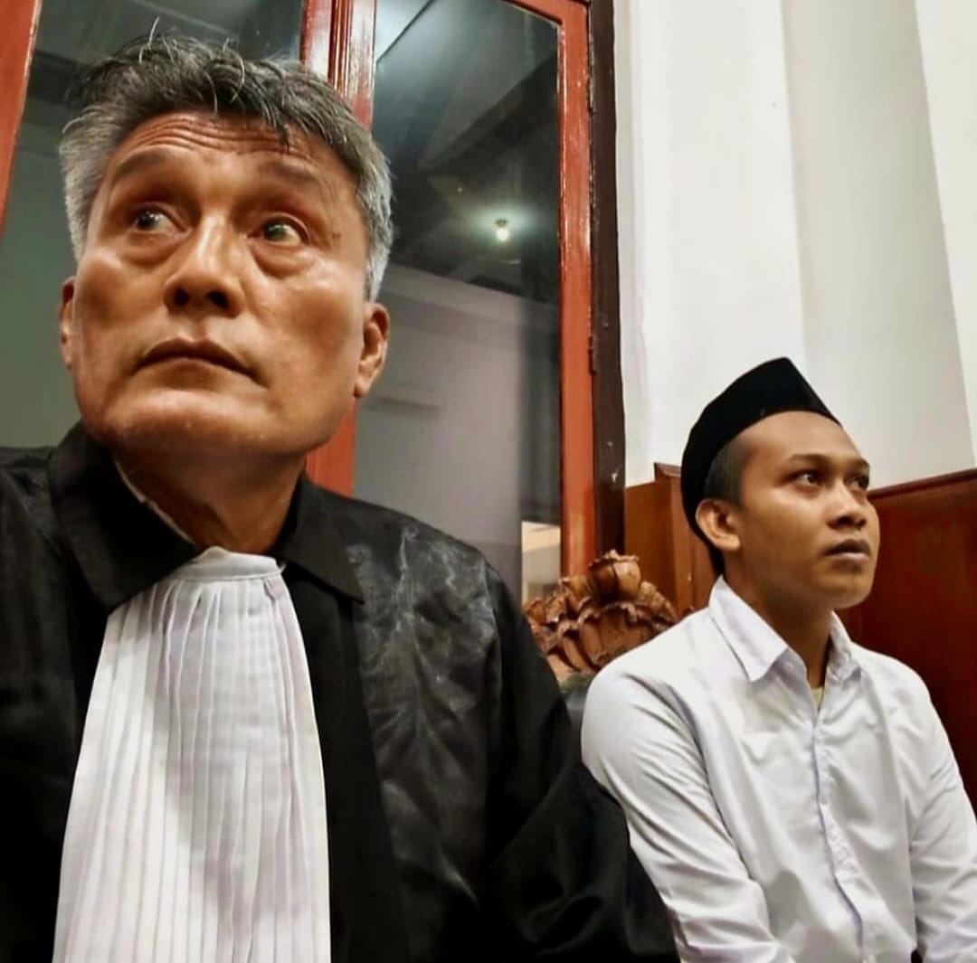 Foto : Terdakwa Muhammad Dikki bin Mulyadi, didampingi PH.Victor Sinaga,SH, menjalani sidang agenda Putusan Hakim, diruang Sari 2 PN.Surabaya, secara Offline.