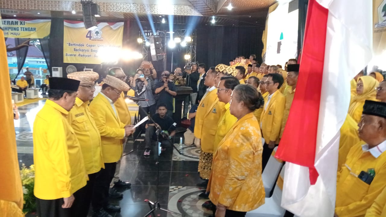 Selanjutnya, pelantikan dan pengukuhan pengurus dan personalia DPD Partai Golkar Kabupaten Lampung Tengah periode 2026-2031 di bawah komando Ketua H. Musa Ahmad langsung dilakukan oleh Ketua DPD Partai Golkar Provinsi Lampung, Ir. H. Hanan A Rozak, M.S didampingi, ketua harian, Riza Mirhardi, S.H, Aprozi Alam, S.E sebagai sekretaris dan H. Tony Eka Candra merupakan bendahara serta turut hadir pengurus dan fungisonaris Partai Golkar Provinsi Lampung lainnya.