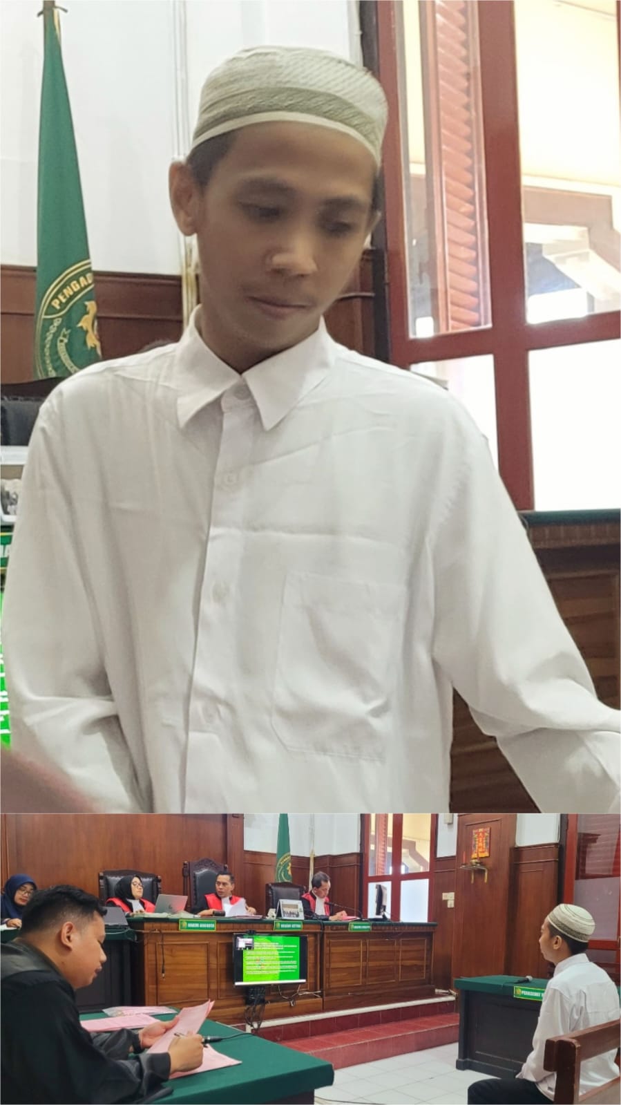 Foto : Terdakwa Muchlis Tri Ardiansyah, dalam perkara pencurian mesin Outdoor AC,menjalani sidang agenda Tuntutan JPU, diruang Kartika 2 PN.Surabaya, secara Offline,Senin (02/06/2025).
