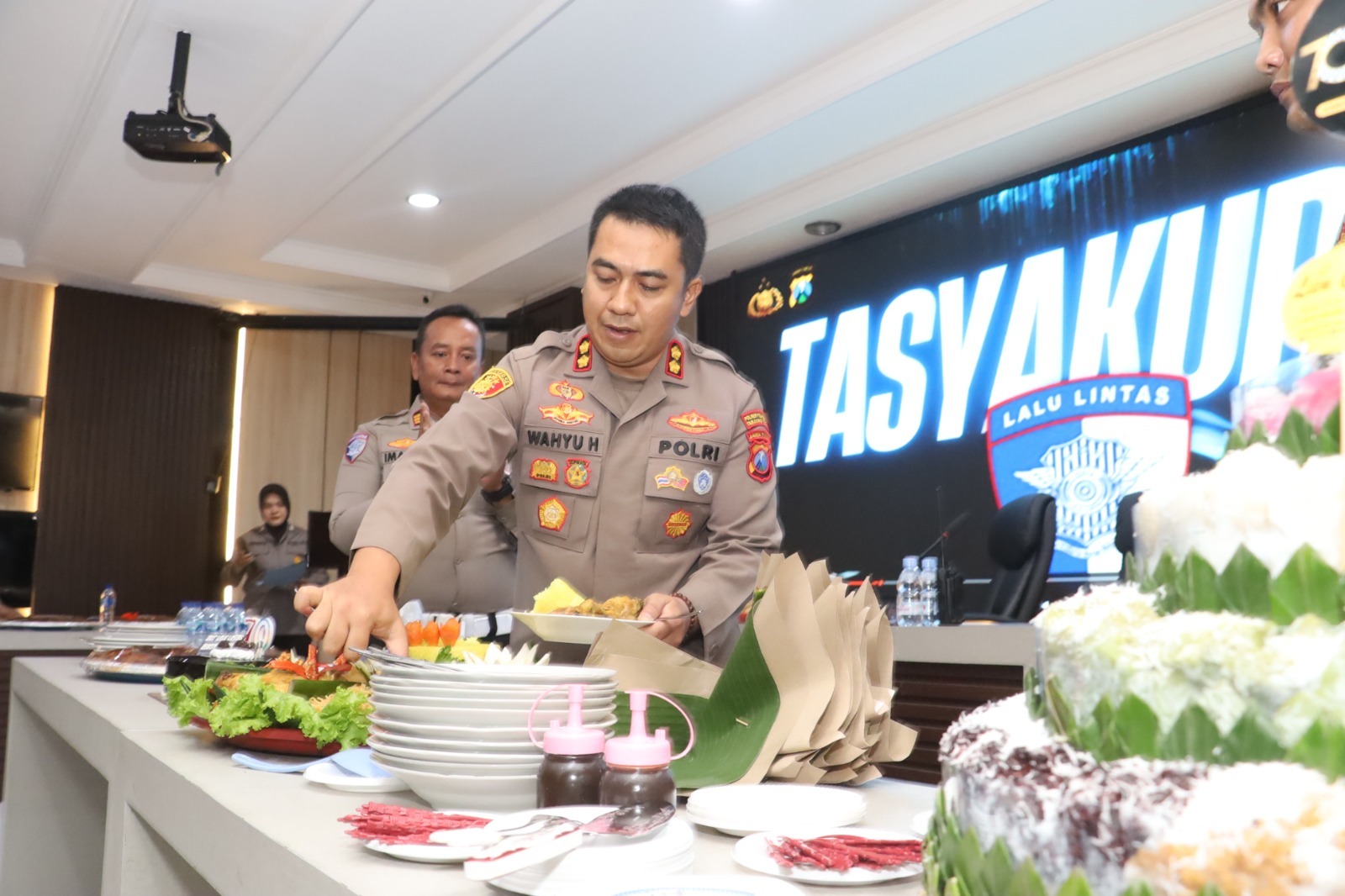 Kegiatan tersebut dihadiri langsung oleh Kapolres Pelabuhan Tanjung Perak, AKBP Wahyu Hidayat didampingi Kasatlantas AKP Imam Sayfuddin Rodji para Pejabat Utama (PJU) serta para kanit dan seluruh anggota Satuan Lalu Lintas (Satlantas) Puncak acara ditandai dengan prosesi pemotongan tumpeng oleh Kapolres sebagai simbol rasa syukur