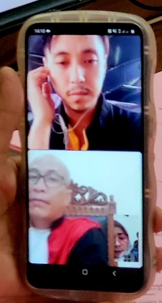 Terdakwa Erwin Mulyono Wijaya anak dari Singgih Wijaya (36),menjalani sidang agenda Tuntutan JPU, diruang Garuda 1 PN.Surabaya,secara Vidio Call, Rabu (03/01/2024).