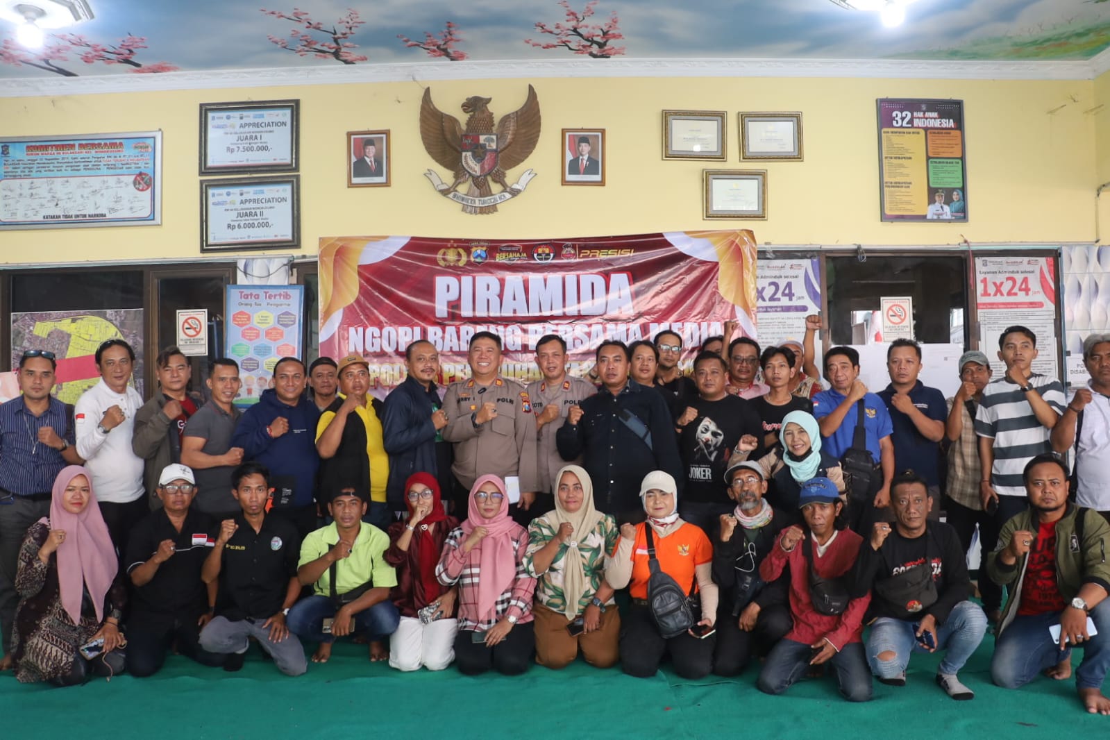 TANJUNGPERAK – Guna Mempererat hubungan dan Membangun komunikasi yang terbuka, Polres Pelabuhan Tanjung Perak bersama Polsek Semampir Menggelar program inovatif bertajuk Piramida (Ngopi Bareng Bersama Media).