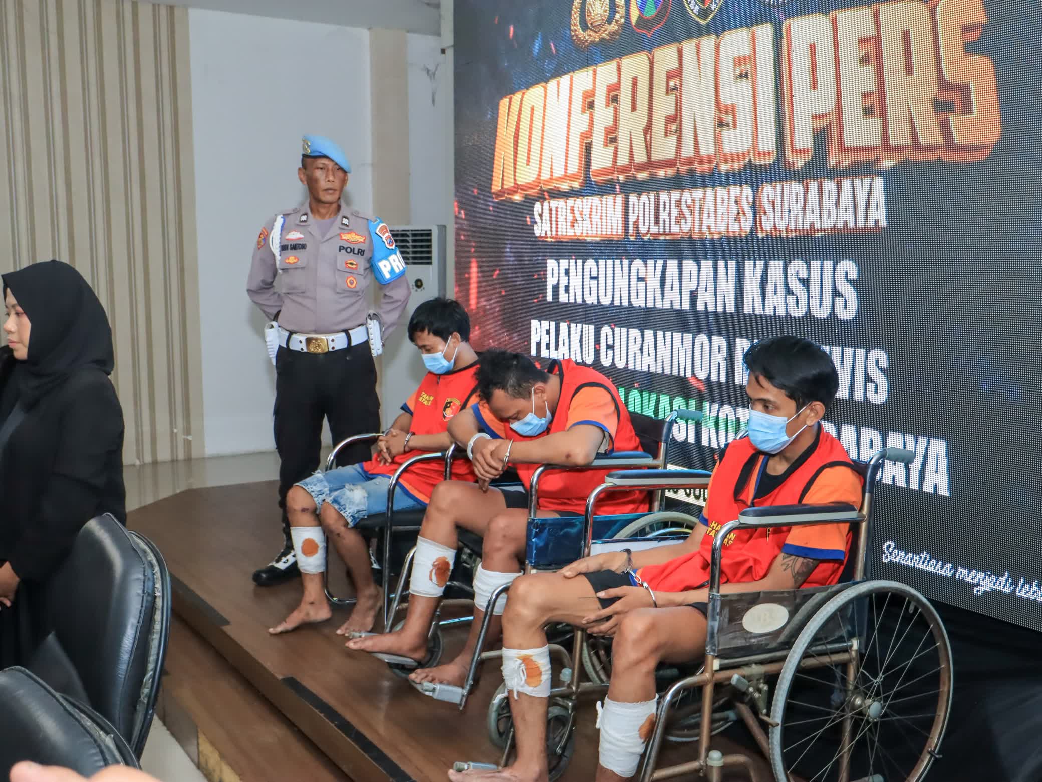 Dalam penangkapan, Ketiga bandit Jalanan itu sempat diberi tindakan tegas terukur dengan ditembak kakinya oleh anggota Satreskrim Polrestabes Surabaya.