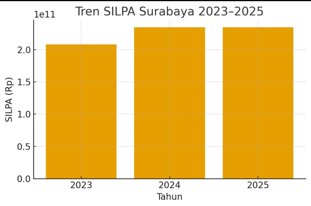 Menurut data resmi Dinas Pengelolaan Keuangan dan Aset Daerah (DPKAD) Kota Surabaya, posisi SILPA per Oktober 2025 mencapai Rp234,44 miliar, dengan total pendapatan daerah Rp7,3 triliun, terdiri dari PAD Rp5,47 triliun dan TKD Rp1,82 triliun. Proporsi SILPA terhadap total pendapatan sekitar 3,2 persen.