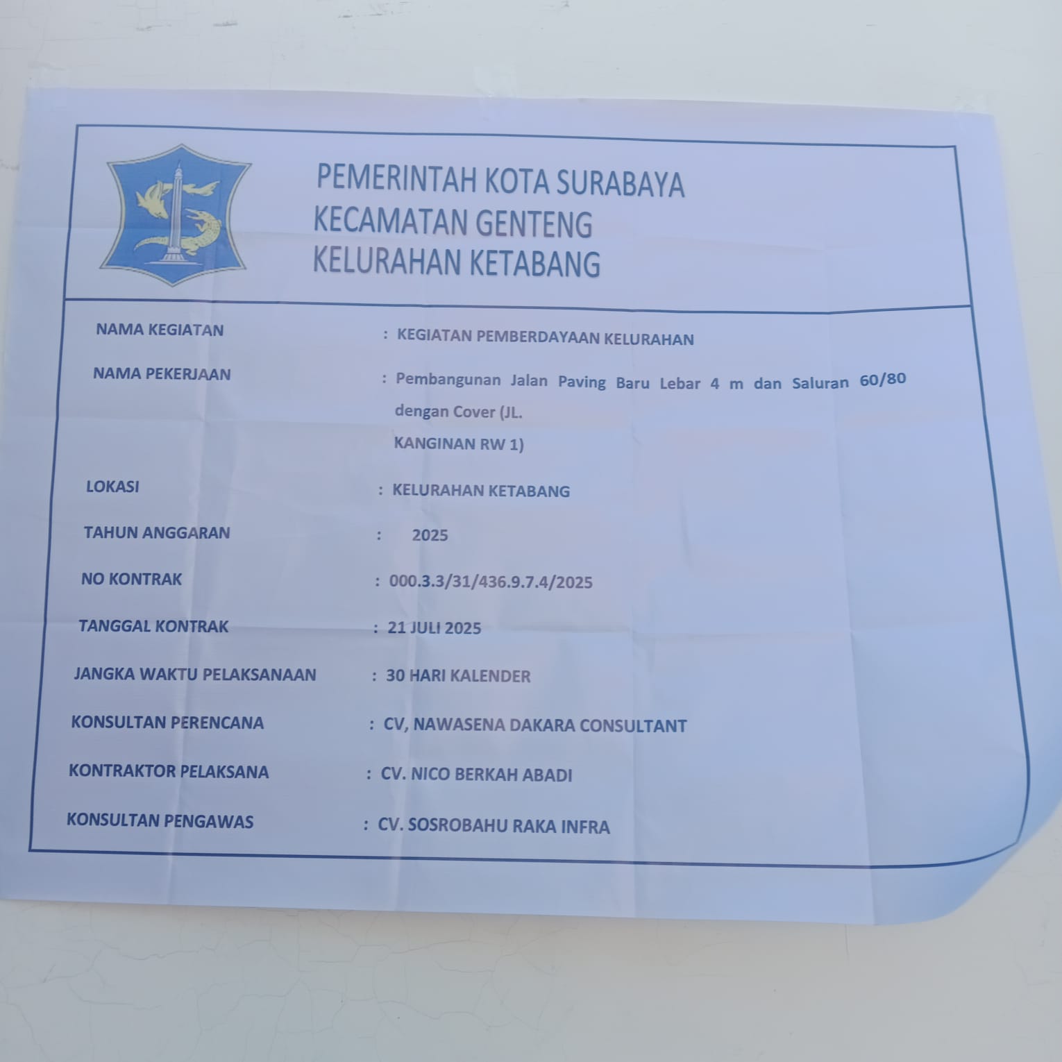 Pemerintah Kota Surabaya melalui Dana Kelurahan Ketabang menargetkan proyek saluran dan paving tersebut selesai tepat waktu. Pekerjaan ini merupakan bagian dari program APBD Kota Surabaya 2025 yang fokus pada peningkatan kualitas infrastruktur dan akses jalan lingkungan.